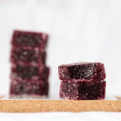 Вылить в подготовленную форму, застеленную пищевой пленкой. Дать мармеладу остыть и выстояться 6-8 часов. Нарезать кубиками и обвалять в сахаре.
